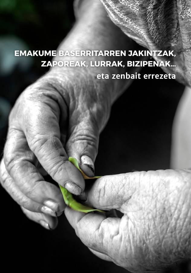 EMAKUME BASERRITARREN JAKINTZAK,ZAPOREAK, LURRAK, BIZIPENAK…eta zenbait errezeta Mery Ann Garling Infanta eta Gabi Basañez Ruizen bilduma Azken urteotan, Bizkaiko EHNEko emakume baserritarrek, baserri munduan eta gure baserrietan izan duten jakintza eta papera berreskuratu eta ikusaraztearen aldeko apustua egin dugu. Liburuetan agertzen ez diren eta oso balio gutxi ematen zaien istorioak berreskuratu behar direla uste...